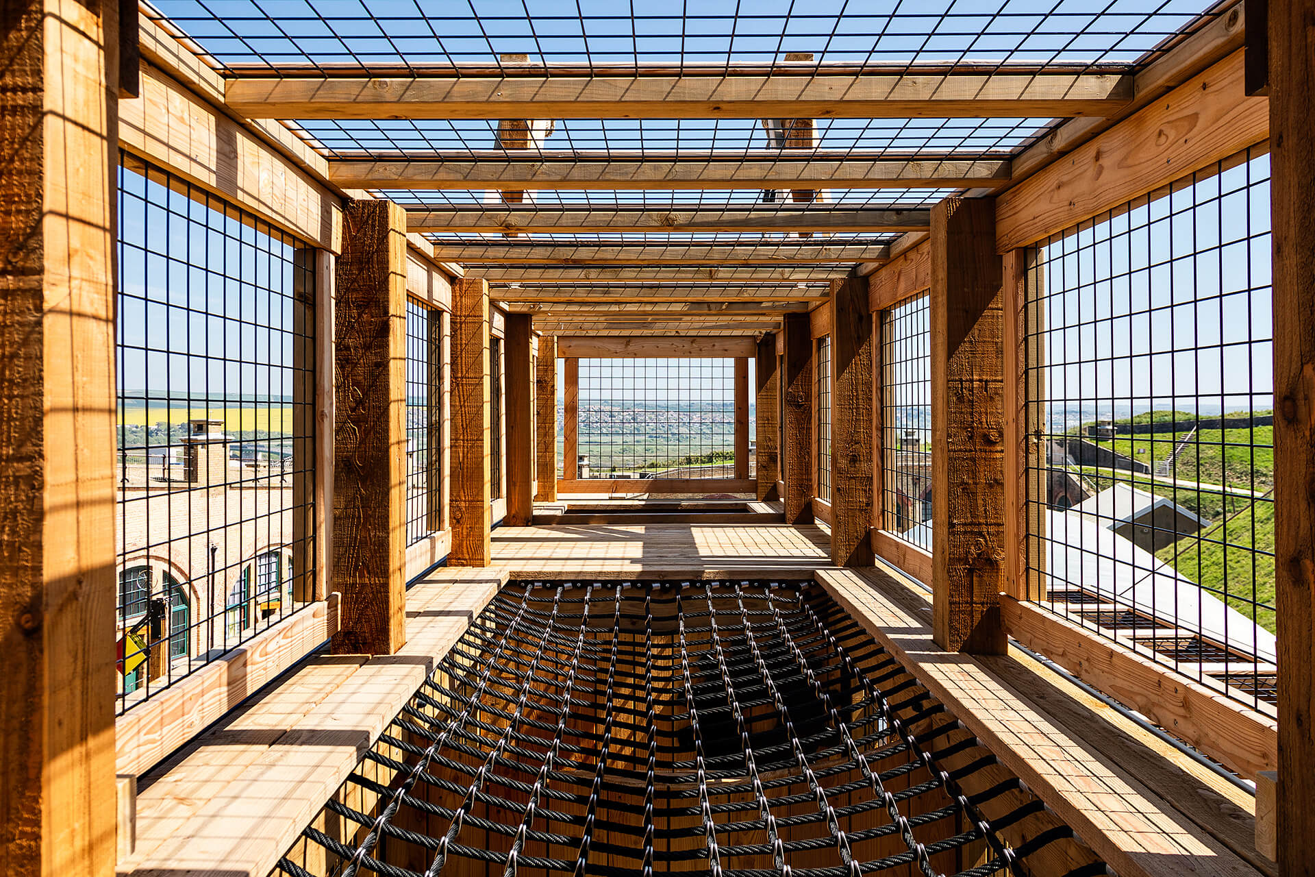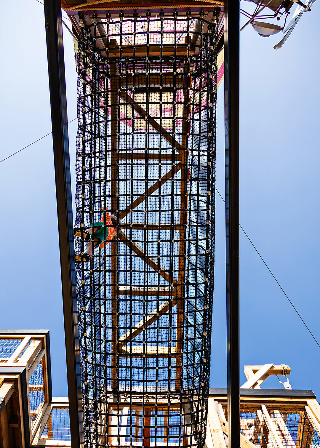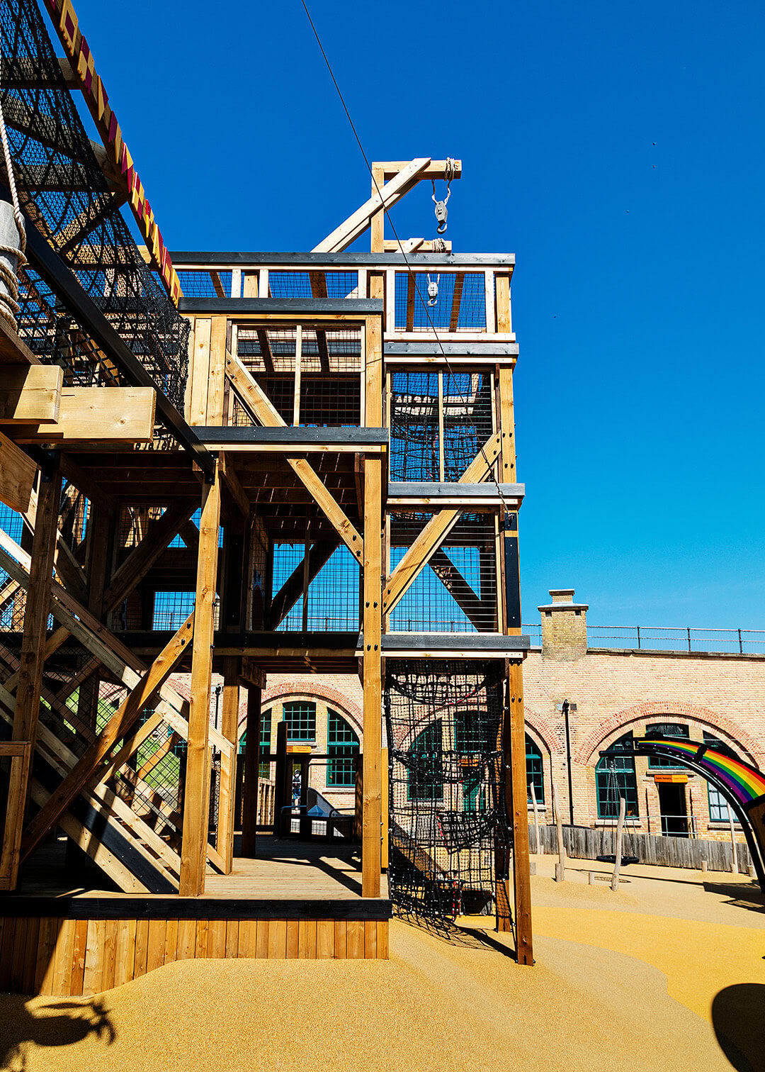 The excavation shaft and signalling box were recreated to present an extensive climbing challenge that takes you high above the fort and if you're brave enough, rewards you with a newly created a signalling game at the top.