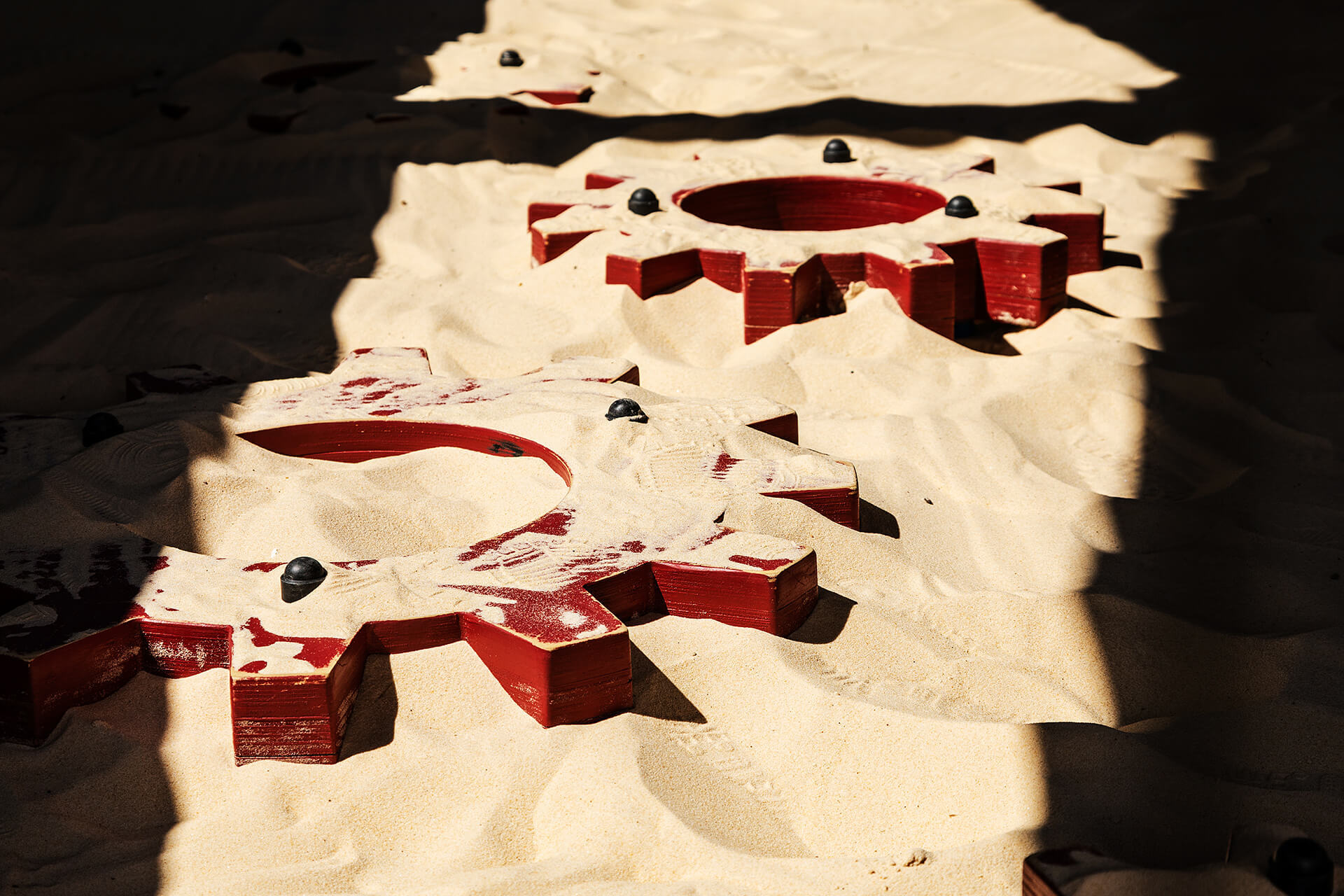 Overall, the landscape was carefully shaped to represent piles of spoil that would have been created during the Forts inception. We did this with a bound rubber capping on compacted gravel. These are central to the play journey at Newhaven and particularly good for little ones as roly-poly and clamber mounds.