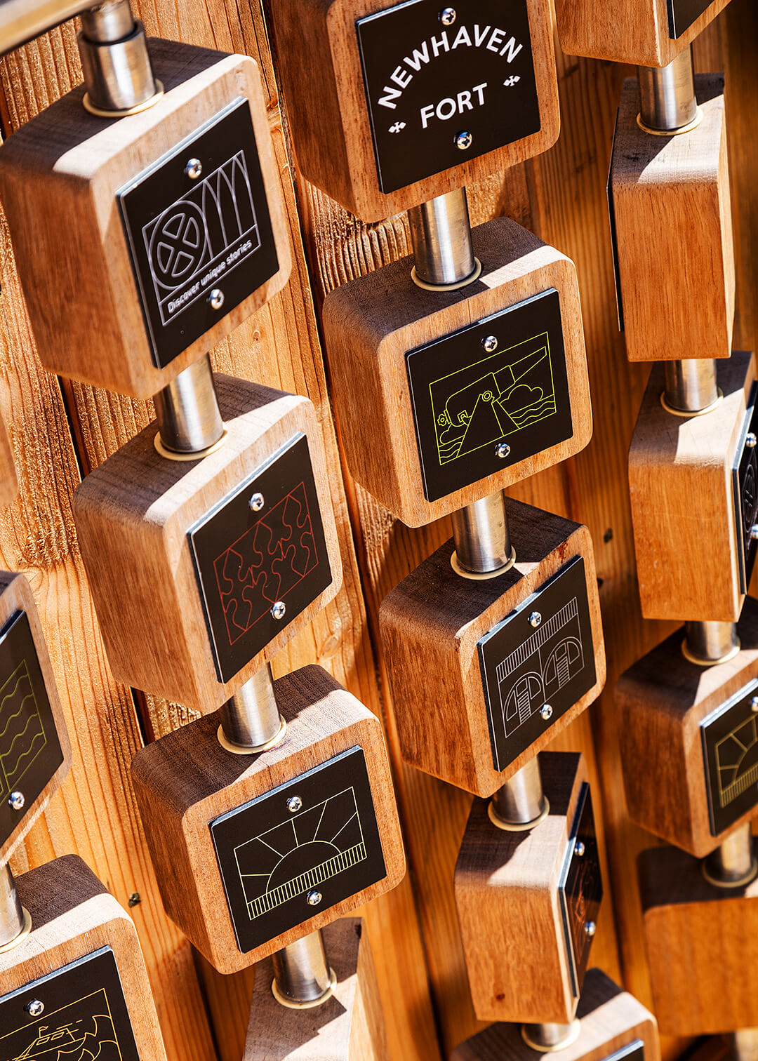 The play invites a bright and celebratory atmosphere to the fort. As part of this, we designed flags that reflect the semaphore language used and the bold and bright colours of the new brand. Using more quirky motifs such as moustaches and rainbows that lighten the industrial mood and create something unique to the fort.