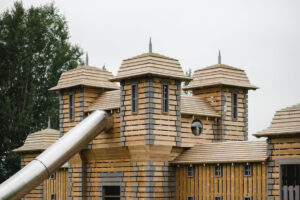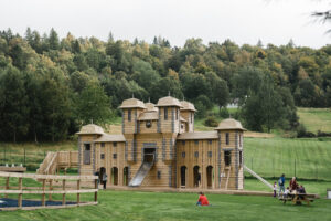 From the outset the inspiration for the play structure was to come from the instantly recognisable architectural elements of Crieff Hydro itself. The plan for the play space centred around an impressive timber structure that echoes the four distinct pepper pot towers, synonymous with Crieff Hydro giving children and visitors an exciting alternative interpretation of the historical building.